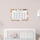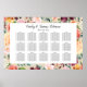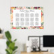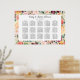 El diseño elegante del poster del gráfico de asientos boda incluye un monograma de los nombres de novias y novios y la fecha del boda, el texto de la plantilla de personalizado para los números de tabla y los nombres de invitados. Enmarcado por un patrón beige de flores acuáticas de verano y otoño, que incluyen rosas, dahlias, flores de peonía y vegetación, en una espléndida paleta otoñal de color rojo burdeos, amarillo dorado, naranja de melocotón, rosa rubor y tonos verdes.