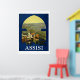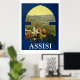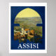 A beautiful illustration viewed from a church steeple overlooking the hillside village of Assisi, with terracotta rooftops and cream-colored Italian buildings stretching into the distance. The scene captures the timeless beauty of Umbria, where stone lanes wind through peaceful streets and the rolling countryside beckons beyond. The word “ASSISI” is elegantly displayed at the bottom in classic travel-poster style. This artwork is perfect for anyone longing for the spiritual, old-world charm of Assisi.