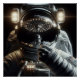 Foto realista como arte aéreo que representa a un astronauta en un espacio con un reflejo de un OVNI y otro astronauta con su casco.