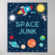 Póster Astronauta de desechos espaciales planetas Rótulo
