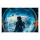 Un ilustracion digital de un astronauta viendo un planeta a través del mirador de una nave inesperada.