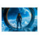 Un ilustracion digital de un astronauta viendo un planeta a través del mirador de una nave inesperada.