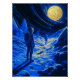 Un ilustracion digital de una astronauta en un estilo de arte de duotones de azul y oro.