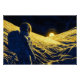 Un ilustracion digital de una astronauta en un estilo de arte de duotones de azul y oro.