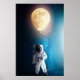 Este es un poster impresionante de un astronauta sosteniendo la luna como globo.