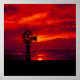 Una silueta de un molino de viento contra un cielo rojo al atardecer.