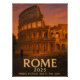 Diseño de afiches de viajes titulado "Roma 2025 - Donde la historia se encuentra con el sol", con el Coliseo bañado en cálida luz solar. Italia,