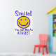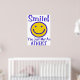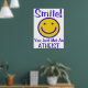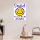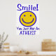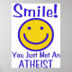 Pon un rostro humano en el ateísmo con una cara amarillo brillante delineada en azul con letras azules que dice: "¡Sonríe! Acabas de conocer a un ATHEISTA".