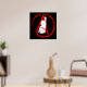 Un poster de un hombre o mujer esquemático blanco con su puño en el aire con una letra escarlata A roja para el ateísmo sobre un fondo negro.