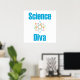 This design says Science Diva. In the middle it has an atom. Show the world you are a Science Diva!