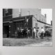 Escuela de bomberos de los años 20. Un bombero saltando de un techo a un trampolín de seguridad de un bombero.