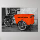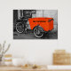 Bicicleta inusual con un mensaje: Atrévase a ser diferente. (puede cambiar la eliminación del mensaje). Un toque de naranja en una decoración en blanco y negro.