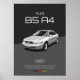 The Audi B5 A4 Sedan is a timeless symbol of 1990s German engineering — refined, balanced, and built to last. With its clean lines and quattro heritage, it represents the era when Audi perfected the modern sport sedan. This poster design pays tribute to the Audi B5 A4 — a true classic that blends elegance and precision in every detail.