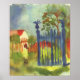 Gartentor. 1914. Acuarela. Vivió durante una época particularmente innovadora para el arte alemán, que vio el desarrollo de los principales movimientos expresionistas alemanes, así como la llegada de los sucesivos movimientos vanguardistas que se estaban formando en el resto de Europa. Como un verdadero artista de su época, Macke sabía cómo integrar en su pintura los elementos de la vanguardia que más le interesaban. August Macke nació en Meschede, Alemania. Su padre, Agosto Friedrich Hermann Macke (1845-1904), era un constructor y su madre, Maria Florentine, née Adolph (1848-1922), procedía de una familia agrícola de la región alemana de Sauerland. La familia vivió en Brüsseler Straße hasta los 13 años de agosto. Después vivió la mayor parte de su vida creativa en Bonn, con la excepción de algunos períodos que pasó en el lago Thun en Suiza y varios viajes a París, Italia, Holanda y Túnez. En París, donde viajó por primera vez en 1907, Macke vio el trabajo de los impresionistas, y poco después fue a Berlín y pasó unos meses en el estudio de Lovis Corinth. Su estilo se formó en el modo del impresionismo francés y el posimpresionismo y luego pasó por un periodo Fauve. En 1909 se casó con Elisabeth Gerhardt. En 1910, a través de su amistad con Franz Marc, Macke conoció a Kandinsky y por un tiempo compartió la estética no objetiva y los intereses místicos y simbólicos de Der Blaue Reiter. La reunión de Macke con Robert Delaunay en París en 1912 iba a ser una especie de revelación para él. El cubismo cromático de Delaunay, que Apollinaire había llamado orfanismo, influyó en el arte de Macke desde ese momento en adelante. Las ventanas de sus tiendas pueden considerarse una interpretación personal de las ventanas de Delaunay, combinadas con la simultaneidad de imágenes encontradas en el Futurismo italiano. La exótica atmósfera de Túnez, donde Macke viajó en 1914 con Paul Klee y Louis Moilliet, fue fundamental para la creación del enfoque luminista de su último periodo, durante el cual produjo una serie de obras ahora consideradas obras maestras. La obra de August Macke puede ser considerada como expresionismo (el movimiento que floreció en Alemania entre 1905 y 1925), y también como parte del fauvismo. Las pinturas se concentran principalmente en expresar sentimientos y estados de ánimo en lugar de reproducir una realidad objetiva, generalmente distorsionando el color y la forma. La carrera de Macke se vio interrumpida por su temprana muerte en el frente de Champagne en septiembre de 1914, el segundo mes de la Primera Guerra Mundial. Su último cuadro, Adiós, representa el ánimo de tristeza que se asentó después del estallido de la guerra. El expresionismo fue un movimiento cultural, inicialmente en poesía y pintura, que se originó en Alemania a principios del siglo XX. Su rasgo típico es presentar el mundo bajo una perspectiva totalmente subjetiva, distorsionándolo violentamente para obtener un efecto emocional y transmitiendo vívidamente emociones e ideas personales. Los artistas expresionistas intentaron expresar el significado de "estar vivo" y experiencia emocional en lugar de la realidad física. El expresionismo surgió como un 'movimiento vanguardista' en poesía y pintura antes de la primera Guerra Mundial; en los años de Weimar fue apreciado por una audiencia masiva, con su popularidad en Berlín, durante la década de 1920. El expresionismo se exhibe en muchas formas artísticas, como la pintura, la literatura, el teatro, el cine, la arquitectura y la música. El término a menudo implica angustia emocional. En un sentido general, pintores como Matthias Grünewald y El Greco pueden ser llamados expresionistas, aunque en la práctica el término se aplica principalmente a las obras del siglo XX. El énfasis expresionista en la perspectiva individual también fue una reacción al positivismo y otros movimientos artísticos como el naturalismo y el impresionismo. Der Blaue Reiter (El jinete azul) fue un grupo de artistas del Neue Künstlervereinigung München en Munich, Alemania. Der Blaue Reiter fue un movimiento alemán de 1911 a 1914, fundamental para el expresionismo, junto con Die Brücke, fundado la década anterior en 1905. Les Fauves (Francés para las Bestias Silvestres) fue un grupo de artistas modernos de corta vida y poco rígido de principios del siglo XX, cuyos trabajos enfatizaron cualidades de género y un fuerte color sobre los valores representativos o realistas conservados por el impresionismo. Mientras que el estilo del Fauvismo comenzó alrededor de 1900 y continuó más allá de 1910, el movimiento como tal duró solamente tres años, 1905-1907, y tuvo tres exhibiciones. Los líderes del movimiento fueron Henri Matisse y André Derain. La pintura es un modo de expresión y los formularios son numerosos. El dibujo, la composición o la abstracción y otras estéticas pueden servir para manifestar la intención expresiva y conceptual del profesional. Las pinturas pueden ser naturalistas y representativas (como en una pintura de vida o paisaje), fotográficas, abstractas, cargadas de contenido narrativo, simbolismo, emoción o de naturaleza política. La pintura es la práctica de aplicar pintura, pigmento, color u otro medio a una superficie (base de soporte). En el arte, el término describe tanto el acto como el resultado, que se llama pintura. Las pinturas pueden tener como soporte superficies como paredes, papel, lienzo, madera, vidrio, lacado, arcilla o hormigón. Los cuadros pueden estar decorados con hojas de oro y algunos cuadros modernos contienen otros materiales como arena, arcilla y trozos de papel. Una parte de la historia de la pintura en el arte oriental y occidental está dominada por motivos e ideas espirituales; ejemplos de este tipo de pintura van desde obras de arte que representan figuras mitológicas sobre cerámica hasta escenas bíblicas representadas en las paredes interiores 