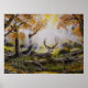 Imagen de Morning Rise Orignal Oil Ping de David E Paul. Venados sentados en la pradera con rayos solares que pasan a través de