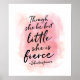 'Aunque sea pequeña, es fiera' tipografía de acuarela poster de impresión presenta tipografía escrita a mano moderna en acuarela rosa. Esta impresión es apropiada en un cuarto de adolescente para una niña. Sencillo pero elegante.