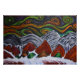 Pintura acrílica en un cuadro de lona de caja que representa una gran cordillera verde sobre la que el sol brilla en el cielo matutino mientras una gran cascada cae en un barranco por debajo.