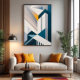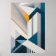Una arquitectura abstracta se eleva en líneas geométricas que se cruzan como rascacielos de luz. El tono dorado irrumpe en azul y gris, revelando una salida del sol simbólica que une fuerza y delicadeza. La obra transmite modernidad, esperanza y dinamismo de las ciudades en crecimiento.