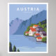 Ilustracion sobre el pueblo de montaña Austria Hallstatt con el lago en el paisaje de los Alpes austríacos
