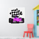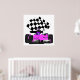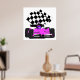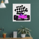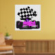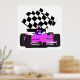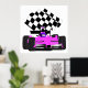 Póster Auto de carreras Girly Pink con bandera verificada