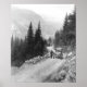 Foto antigua de Detroit Electric yendo automáticamente de Seattle al Monte Rainier. Uno de los primeros coches eléctricos. Fotografía tomada a principios de los años 1900 en una carretera de montaña en el estado de Washington, 1919.