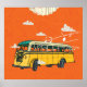 Póster Autobús Antiguo: Fondo con Textura de Nubes