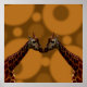 En un fondo circular marrón se pueden ver dos jirafas idénticas