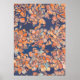 A bold botanical design of floral rosettes in a rich autumn color palette of blues and beige.