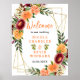 Póster Autumn Burgundy Orange Floral Wedding Welcome Sign