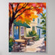 Autumn Cafe Watercolor Fall Foliage Art Poster