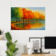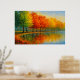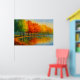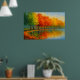 A symphony of seasonal transformation, Autumn In New England captures the fleeting brilliance of fall with cinematic intensity. A row of trees stretches across the canvas, their foliage shifting from verdant green to fiery crimson, amber, and gold—each hue a heartbeat in nature’s final crescendo before winter. The calm water below mirrors the trees with glassy precision, doubling the drama and inviting reflection, both literal and emotional.