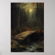 Póster Autumn Moonlit Forest Bridge Rustic Woodland Art
