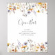 Este poster bar boda de flores silvestres en otoño es perfecto para un boda rústico. El diseño se compone de múltiples acuarelas moradas, violetas, flores amarillas, borgoñas y follaje verde oliva bellamente agrupados en ramos.