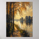 Sumérjase en la tranquilidad del otoño con esta impresionante huella de arte impresionista. Cuenta con un camino a orillas del río, rodeado de árboles dorados y una luz solar que refleja el agua. Ideal para añadir calidez y serenidad a la decoración de las paredes.