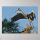 Perón de aves grises (Ardea cinerea) que llega a la cima de un árbol con una espiral en el pico de la Camarga es una región natural situada al sur de Arles, Francia, entre el mar Mediterráneo y los dos brazos del delta del Ródano