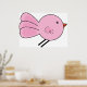 Un lindo pájaro rosado con un pico rojo. Este diseño parece realmente efectivo en este Poster