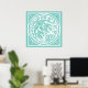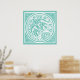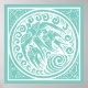El ilustracion vintage de los animales Art Nouveau de color verde azulado diseño con varios pájaros voladores en el centro rodeados de olas de viento o océano con mariposas y estrellas en las esquinas.
