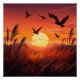 Aves asombrosas en silueta que se disparan contra el fondo del atardecer, creando un ambiente natural tranquilo y artístico.
