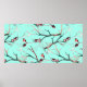 Póster Aves en las ramas de los árboles acuarela pintadas