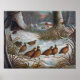 Un antiguo cuadro de los años 1800 con un delicioso ilustracion de pájaros en un entorno invernal.