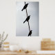 Un grupo de tres pájaros se sientan juntos en una silueta de alambre cubierta por cielos nublados. Hermosa fotografía en blanco y negro crudo del artista Rick Short de una simple toma de la naturaleza interactuando con nuestro medio ambiente. Derechos reservados Rick Short, todos los derechos reservados.