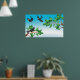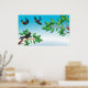 Tres hermosos pájaros volando alrededor de un árbol. Este diseño parece realmente efectivo en este Poster