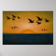 Vibrante puesta de sol en el paisaje con pájaros escalando en el cielo. Esta escena cautivadora combina técnicas fotográficas y de ilustracion, aportando la belleza de la naturaleza a la vida con colores vivos y olas serenas en el océano.