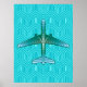 Póster Avión Art Déco, Turquesa, Verde azulado y Aqua