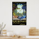 Una interpretación artística de un coche clásico azul recorriendo las carreteras de España promoviendo el turismo. Balanceamos cuidadosamente y restauramos los colores originales con pliegues plegables y defectos corregidos digitalmente. Los posters tienen una frontera para facilitar un marco conveniente. Comparar.