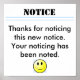 Póster AVISO, Gracias por notar este nuevo no...