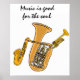 Poster musical divertido con trompeta, tuba y saxofón. La música es buena para el alma. Ideal para los amantes de la música.