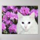 Gato blanco con azaleas color lavanda. Los ojos azules de Cat se venían para coincidir con el poster fotográfico de azaleas. Tamaño para 14x11