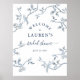 Elegante y simple patrón de toile francés azul y blanco con pájaros en rama de árbol para cartel de bienvenida a la ducha nupcial.