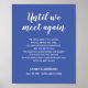 Este elegante cartel conmemorativo, con su toque Hasta que nos reunamos de nuevo, con poema en blanco sobre un fondo azul, es una hermosa manera de recordar y honrar al ser querido en la reunión de la Celebración de la Vida. También hace un hermoso recuerdo de la casa. Personalizar con su texto en la parte inferior.